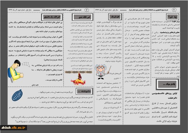 دومین شماره نشریه بسیج دانشجویی "یک لیوان دریا" در تاریخ 16 آذر ماه مصادف با روز دانشجو، با تنوع مطالب مناسبتی درج شده در آن منتشر شد.