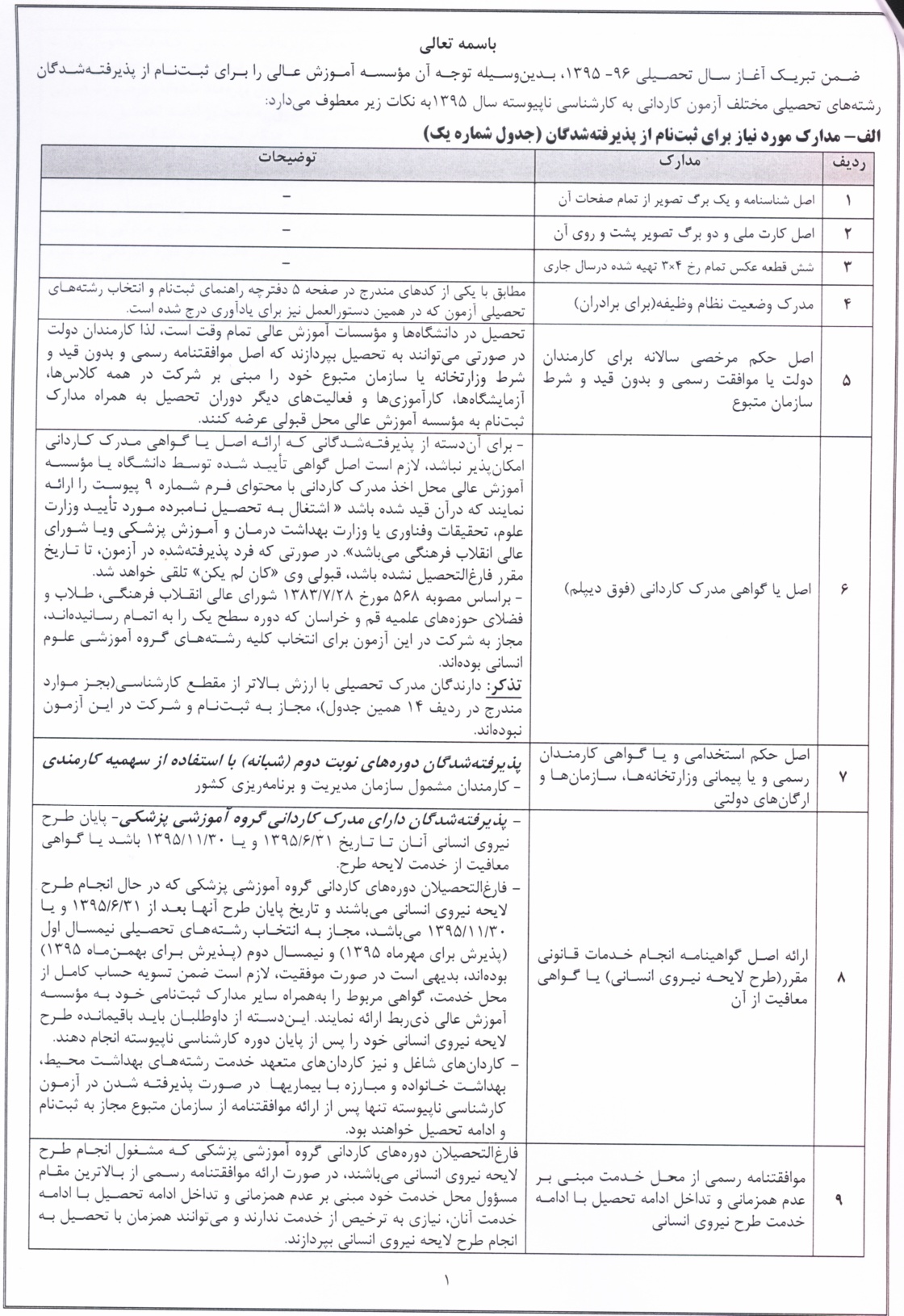 اطلاعیه - قابل توجه پذیرفته شدگان کارشناسی ناپیوسته 95