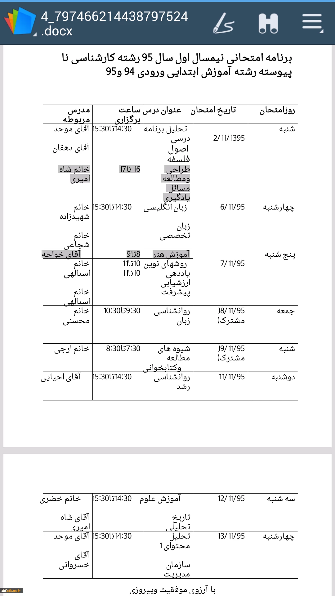 برنامه امتحانات پایان ترم کارشناسی پیوسته