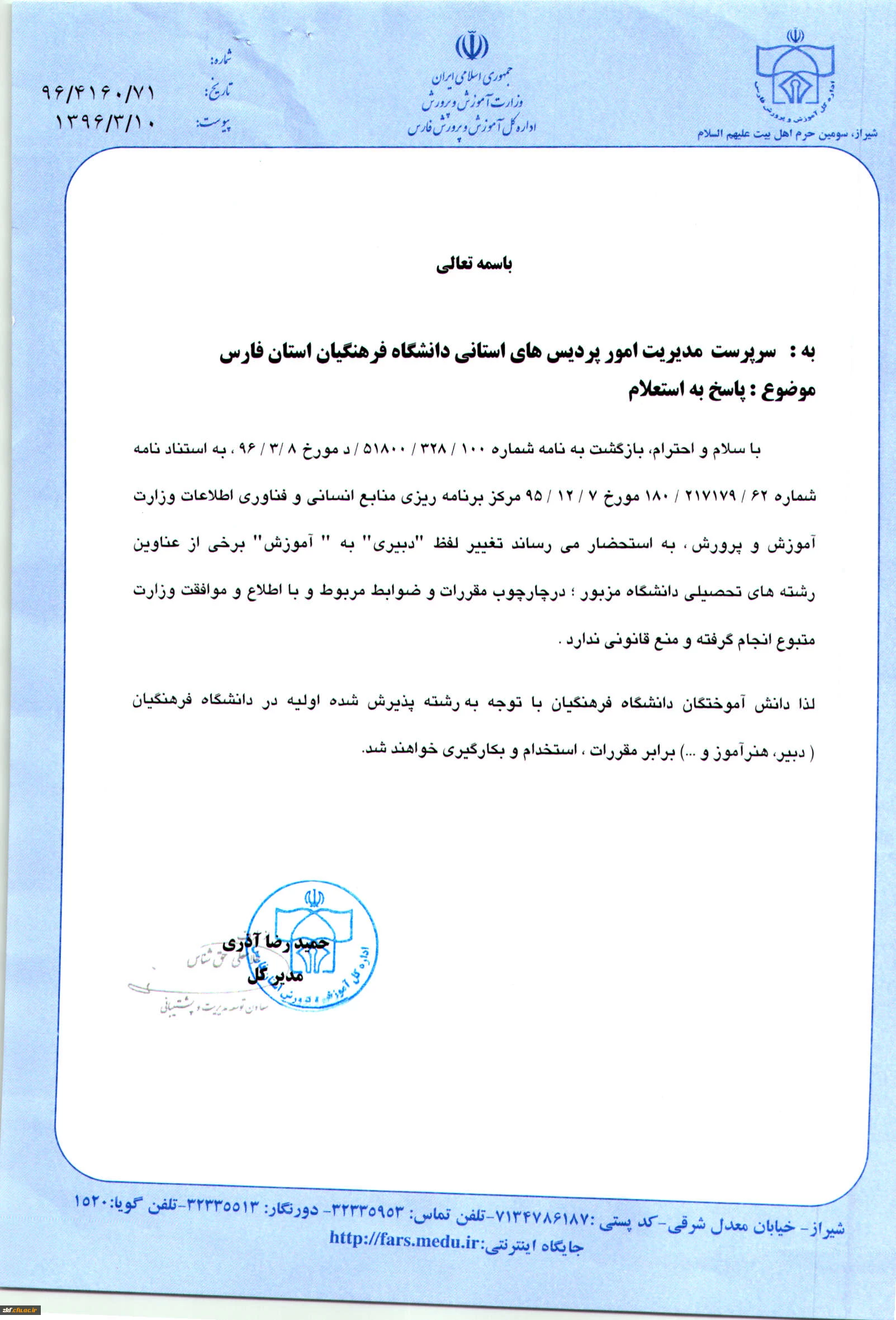مدیریت امور پردیس های استان فارس