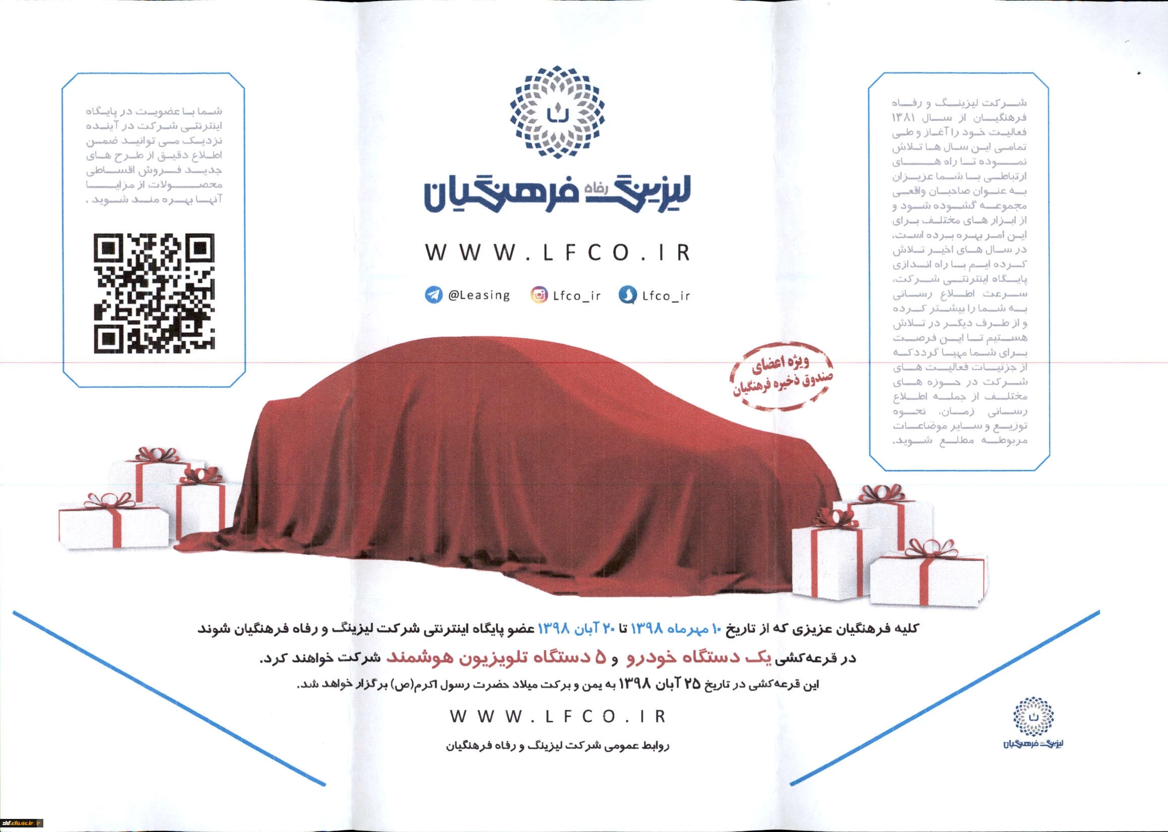 امتیاز دهید : بخشنامه طرح جشنواره باشگاه مشتریان شرکت لیزینگ و رفاه فرهنگیان 2 دوشنبه 15 مهر 1398 ساعت 13:57