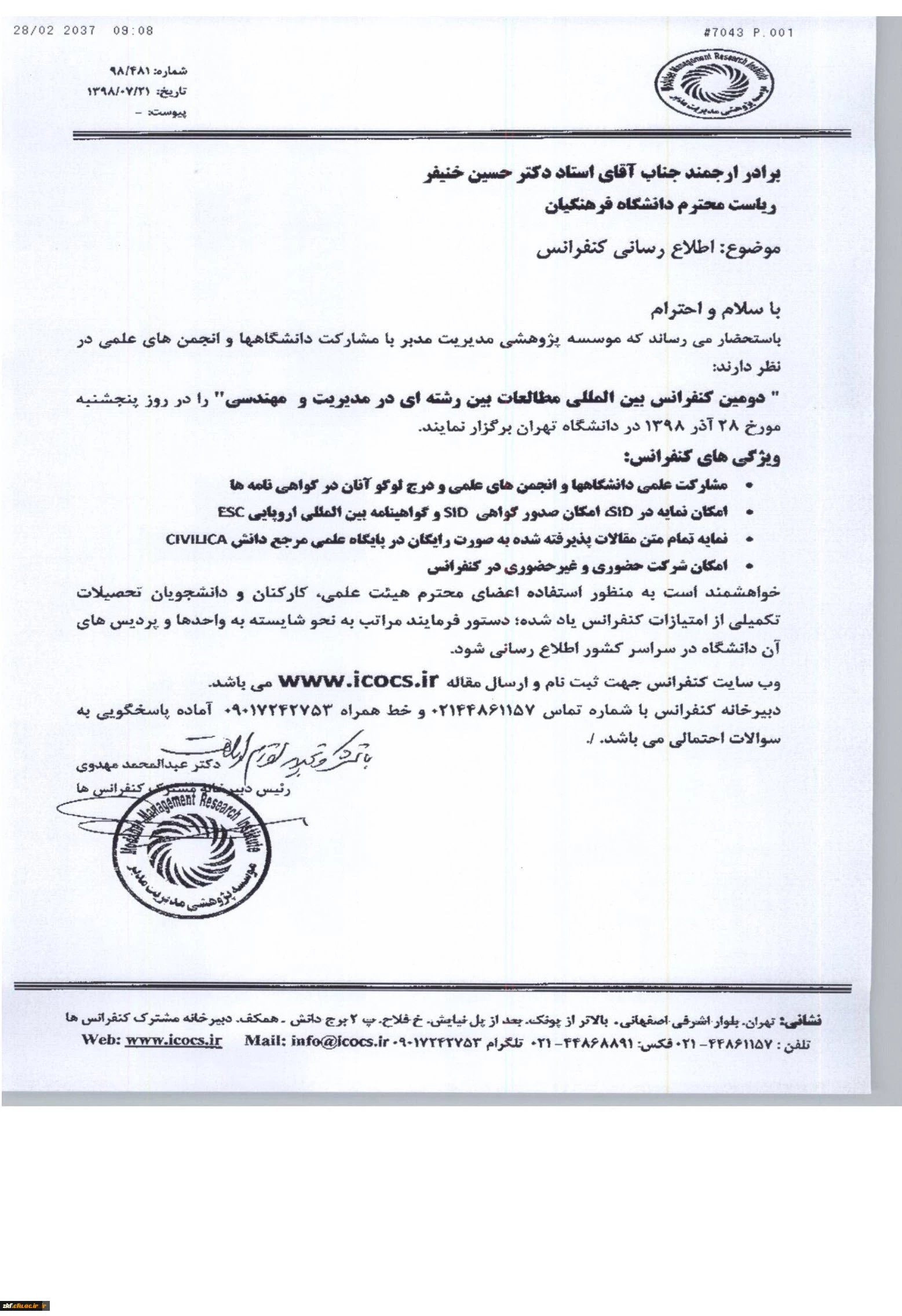 امتیاز دهید : فراخوان دومین کنفرانس بین المللی بین رشته ای در مدیریت ومهندسی 2 سهشنبه 30 مهر 1398 ساعت 8:09