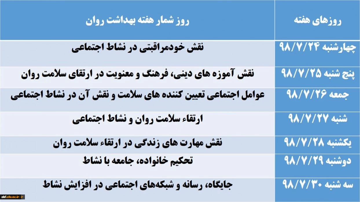 روز شمار هفته بهداشت روان 2