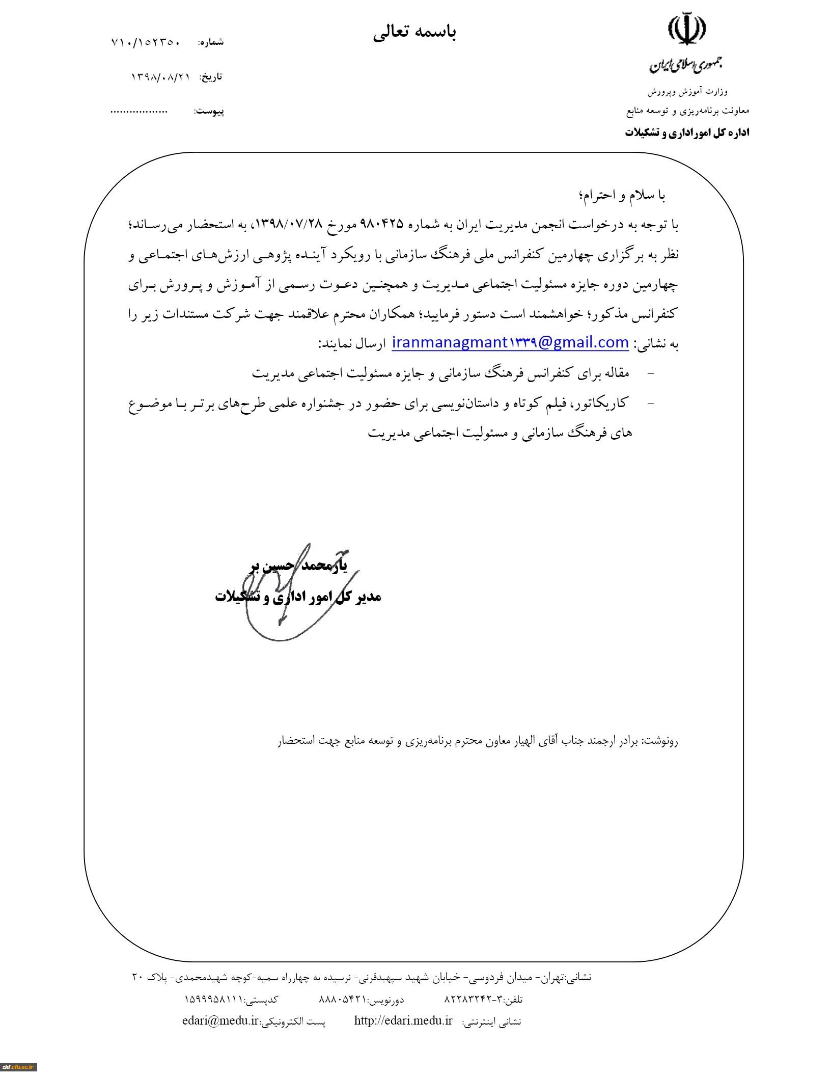 ارسال مقاله و فیلم کوتاه با موضوع فرهنگ سازمانی 2