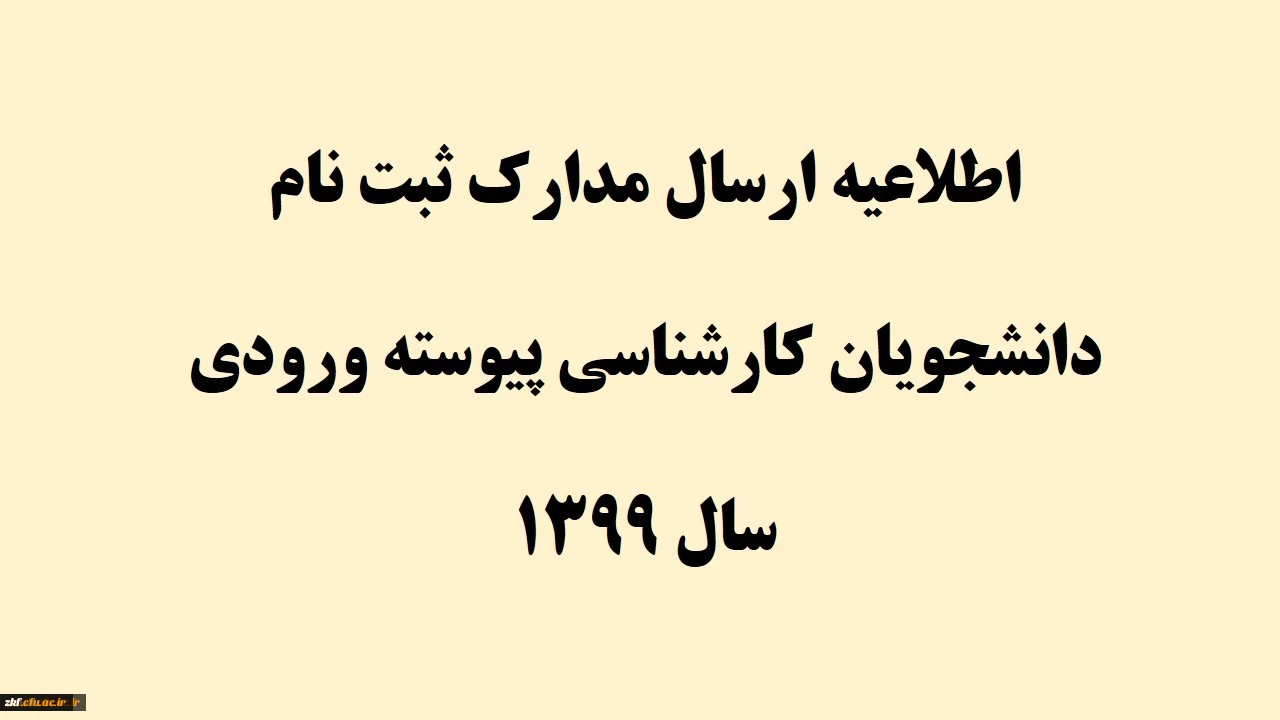 امتیاز دهید : اطلاعیه ارسال مدارک ثبت نام دانشجویان کارشناسی پیوسته ورودی سال 1399 11 شنبه 1 آذر 1399 ساعت 9:25