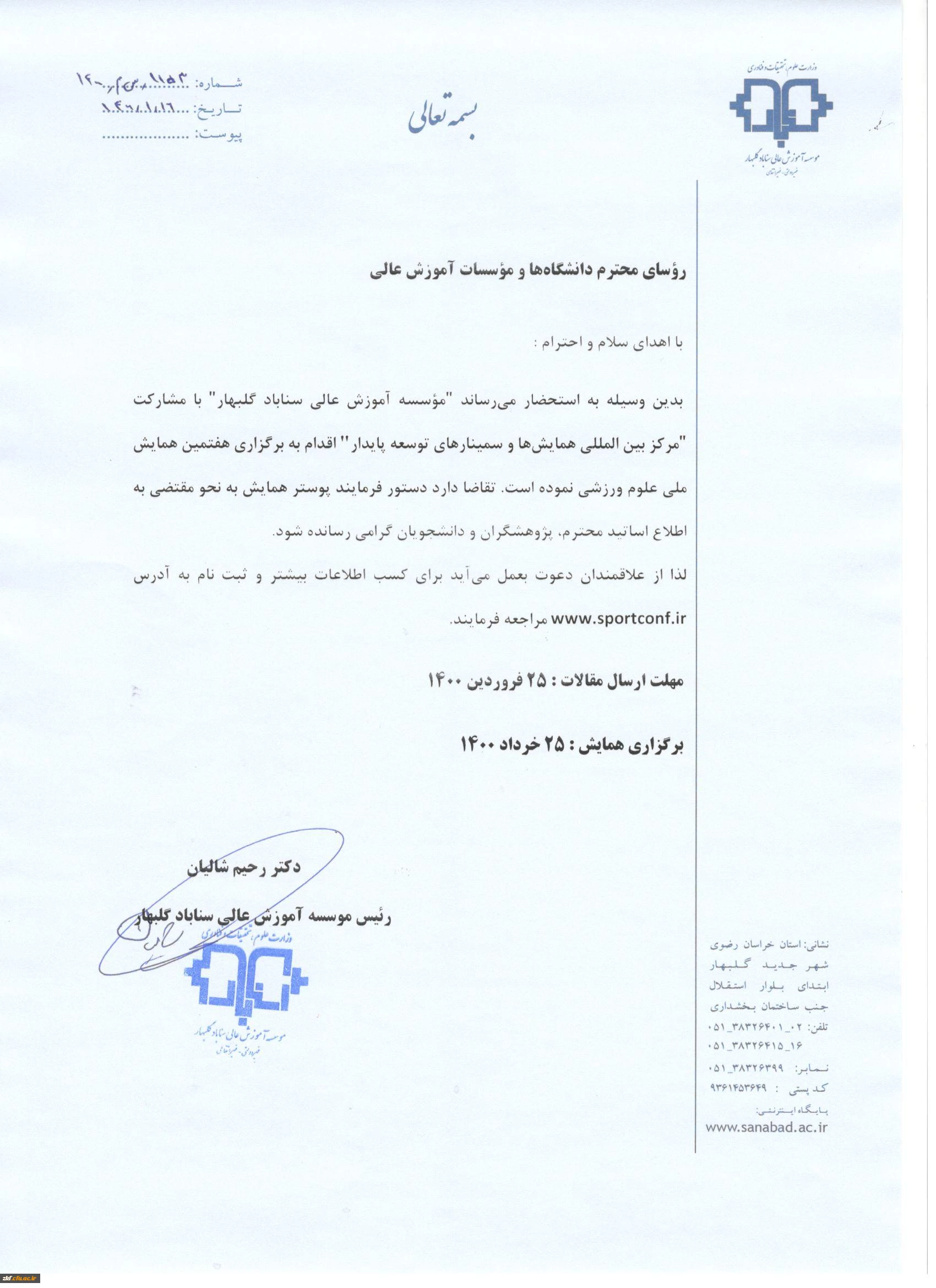 هفتمین همایش ملی علوم ورزسی و تربیت بدنی ایران  2