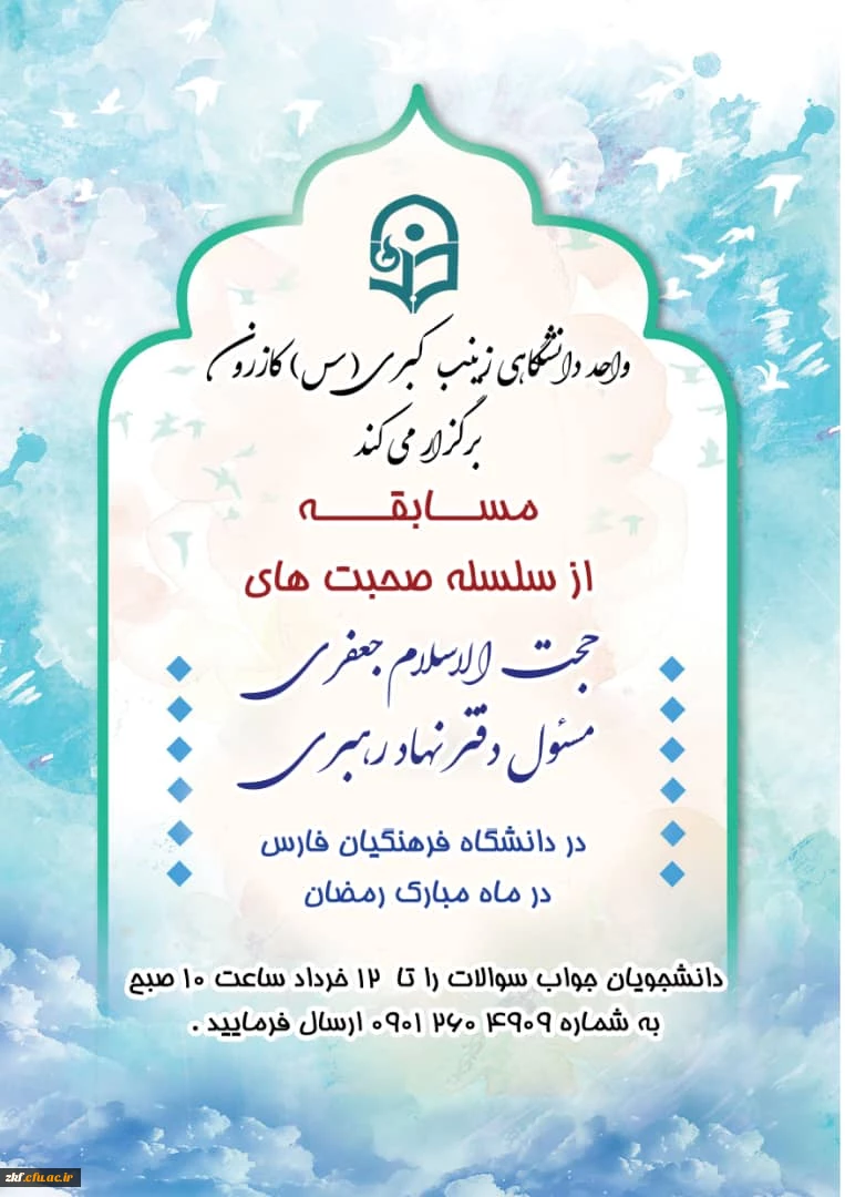 مسابقه سسلسه صحبت های حجت الاسلام حاج آقا جعفری مسئول دفتر نهاد رهبری در دانشگاه فرهنگیان فارس 2