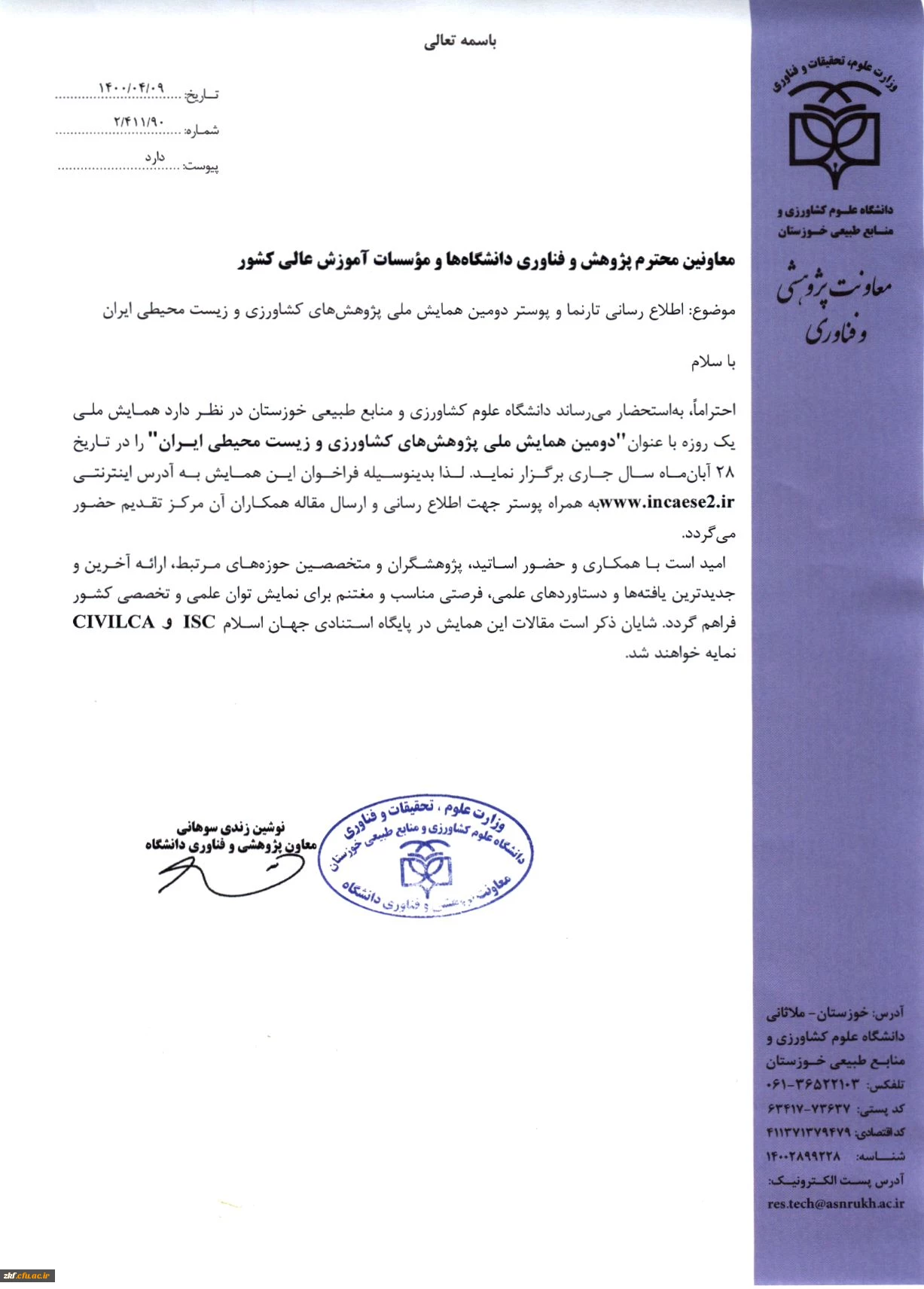 دومین همایش ملی پژوهش های کشاورزی و زیست محیطی ایران 2