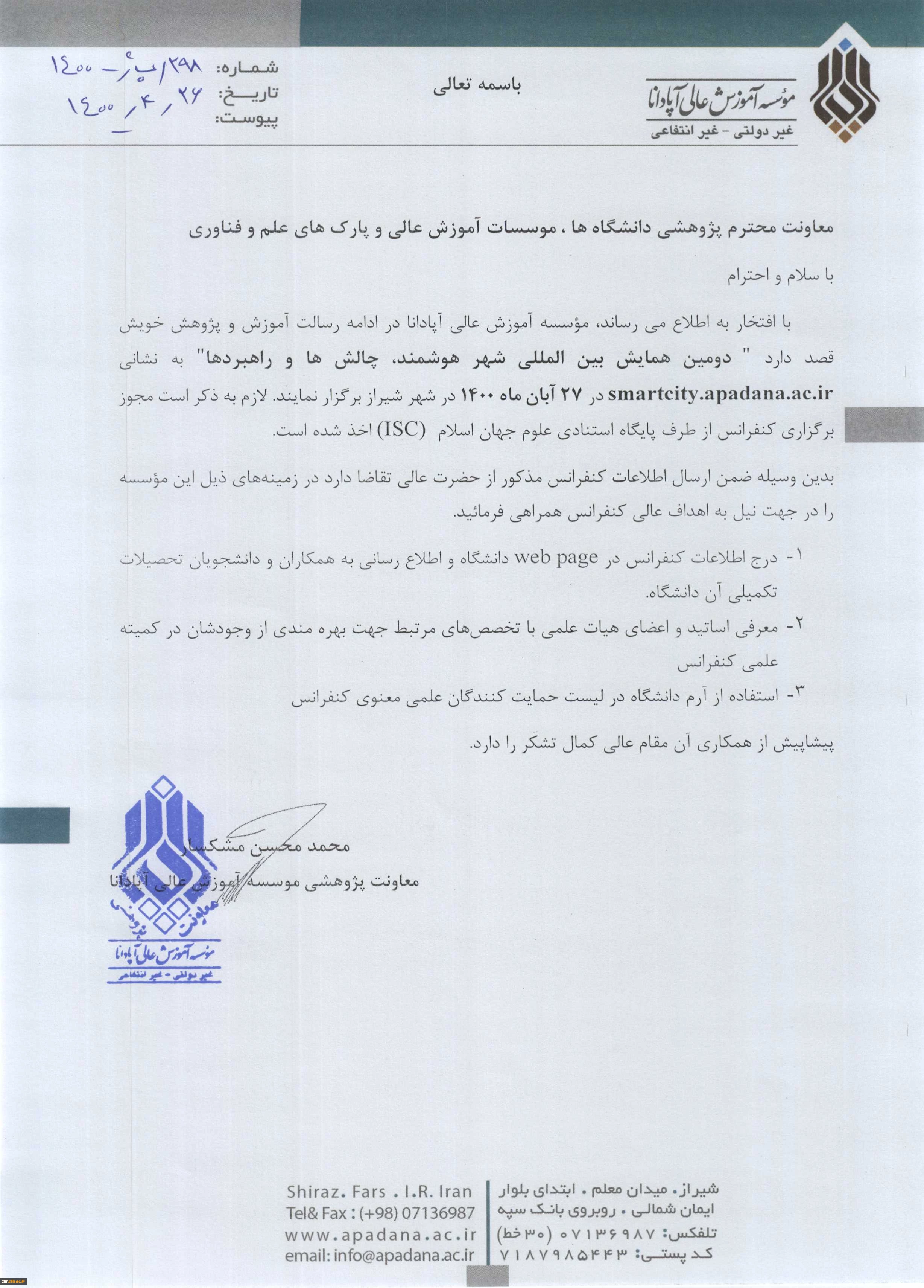 امتیاز دهید : دومین کنفرانس بین المللی شهر هوشمند ، چالشها و راهبردها 2 چهارشنبه 20 مرداد 1400 ساعت 11:29