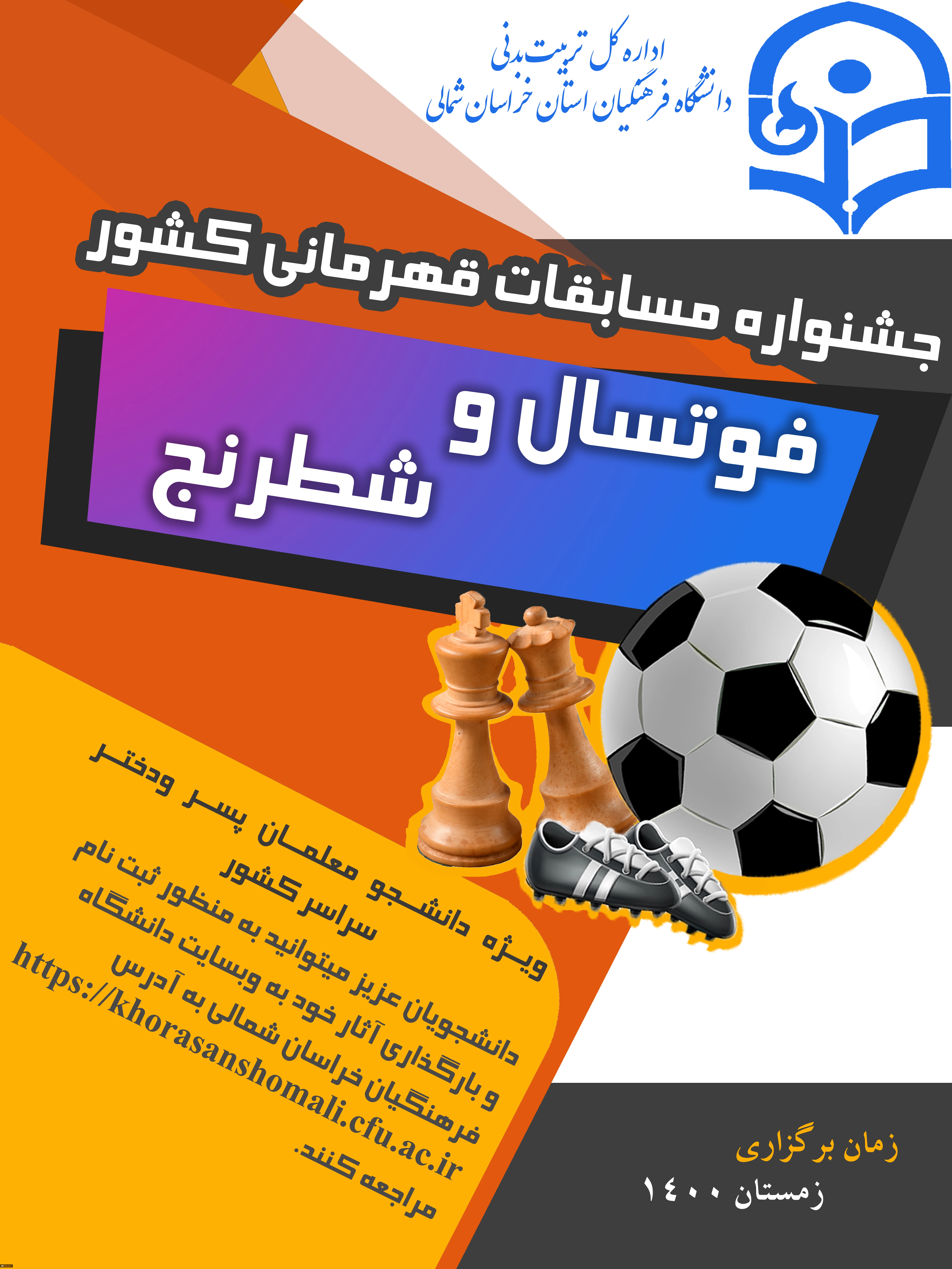مسابقات فوتسال و شطرنج دانشجو معلمان( پسر – دختر ) سراسر کشور که به میزبانی استان خراسان شمالی 2