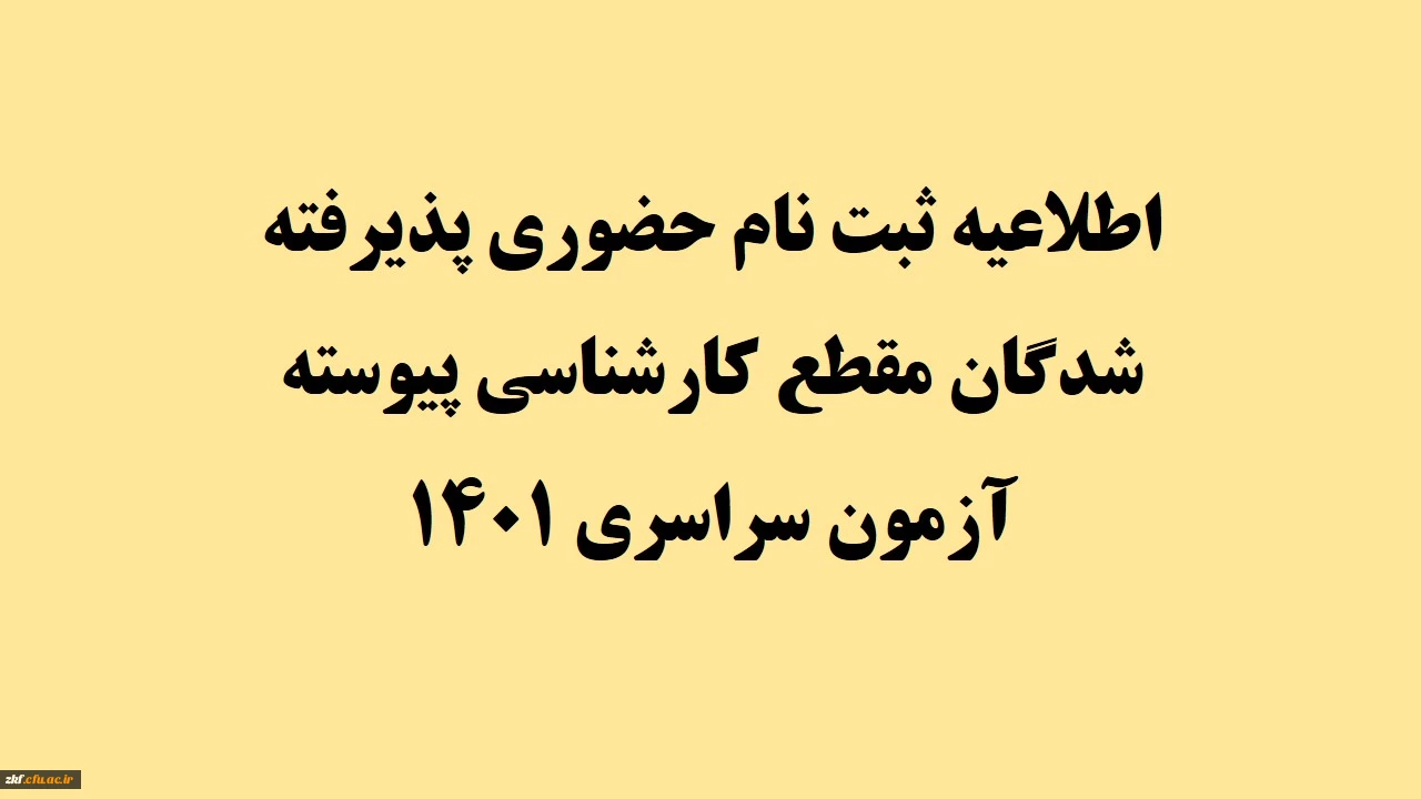 اطلاعیه ثبت نام حضوری پذیرفته شدگان مقطع کارشناسی پیوسته آزمون سراسری 1401 2