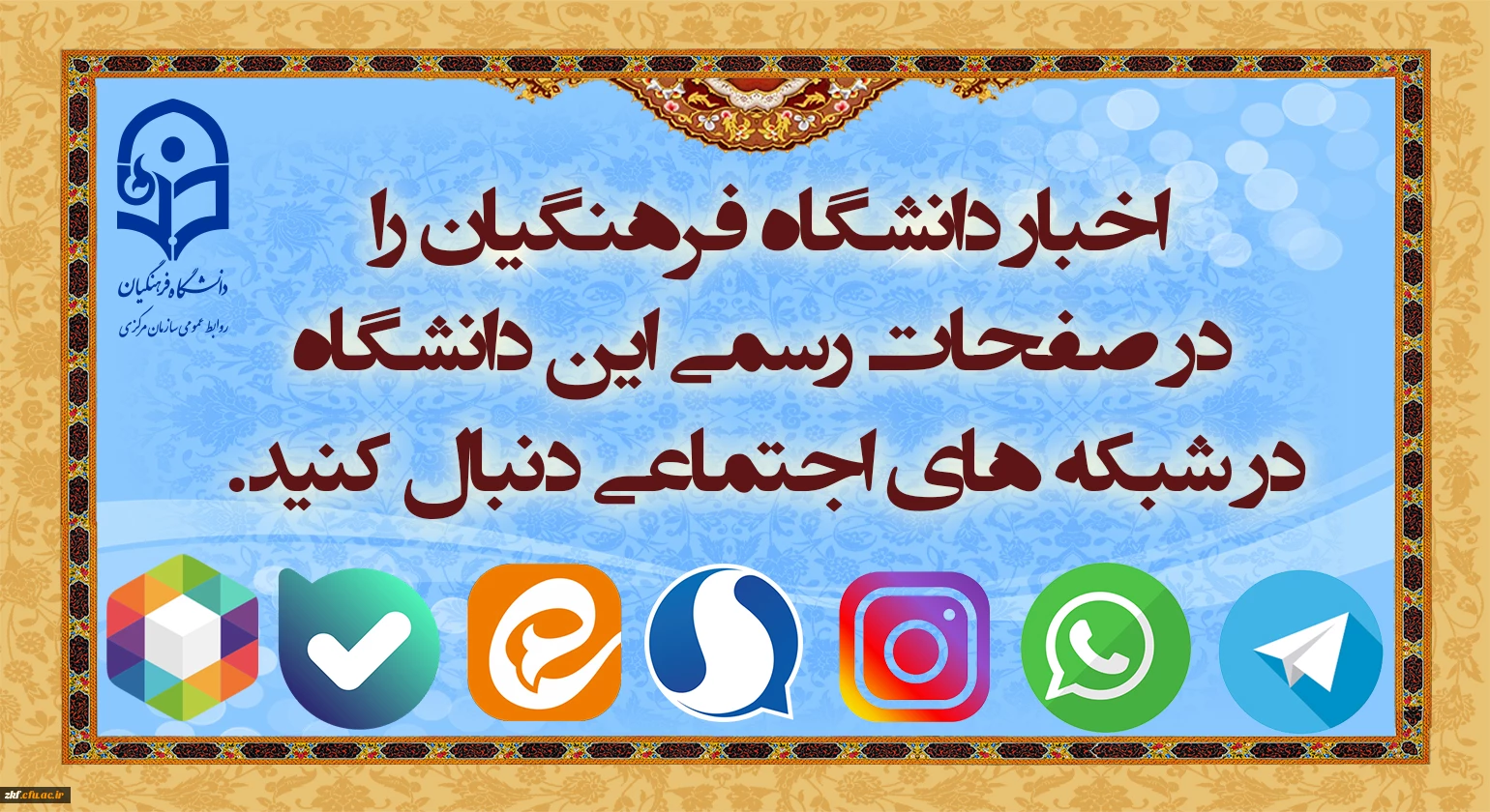شبکه های اجتماعی متعلق به روابط عمومی دانشگاه فرهنگیان، سریعترین بهترین، راه ارتباطی بین خانواده بزرگ دانشگاه فرهنگیان است. 2