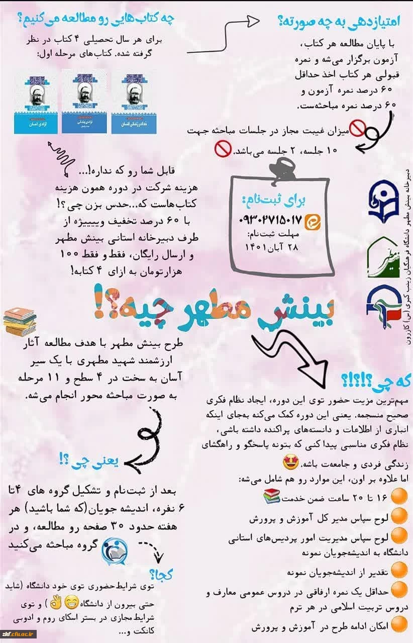 امتیاز دهید : فراخوان ثبت نام مرحله اول دوره بینش مطهر با محوریت آثار شهید مرتضی مطهری 2 شنبه 28 آبان 1401 ساعت 11:40