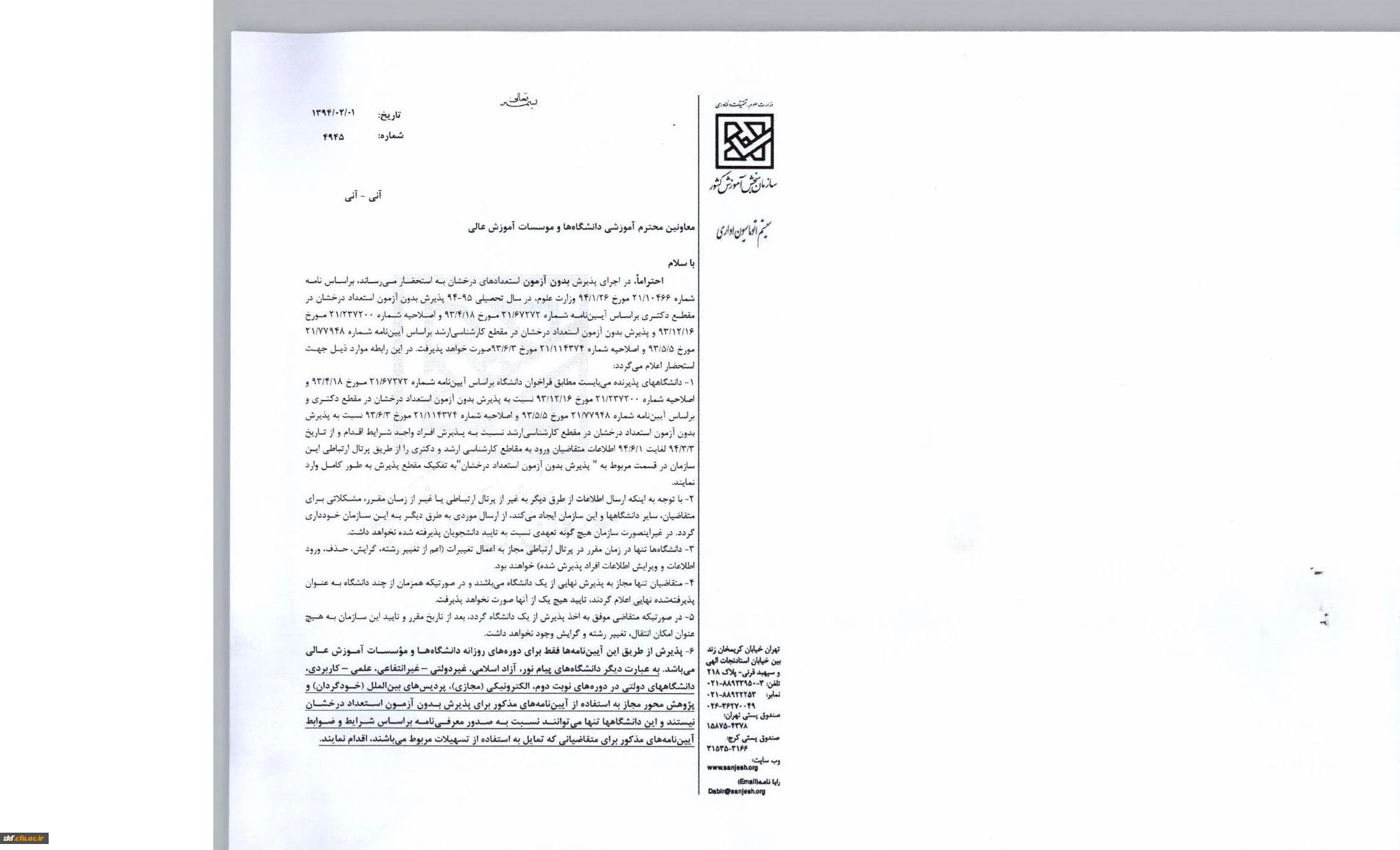 اجرای پذیرش بدون آزمون