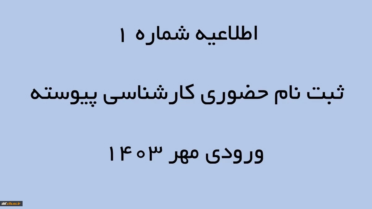 امتیاز دهید : اطلاعیه شماره 1 ثبت نام حضوری کارشناسی پیوسته ورودی مهر 1403 2 دوشنبه 2 مهر 1403 ساعت 13:40